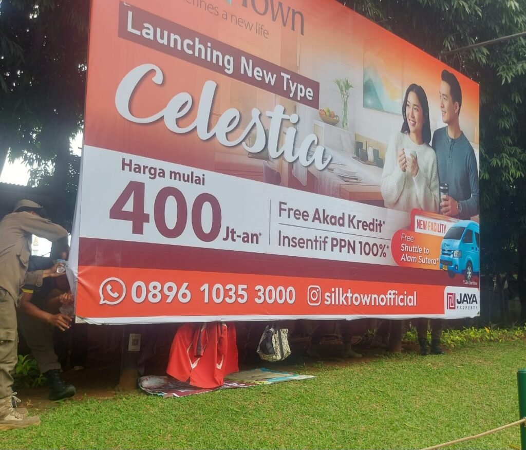 TintaOtentik.Co – Satuan Polisi Pamong Praja Kota Tangerang Selatan (Satpol PP) melakukan penertiban terhadap sejumlah reklame yang belum memiliki izin di wilayah Serpong, Serpong Utara hingga Pondok Aren
