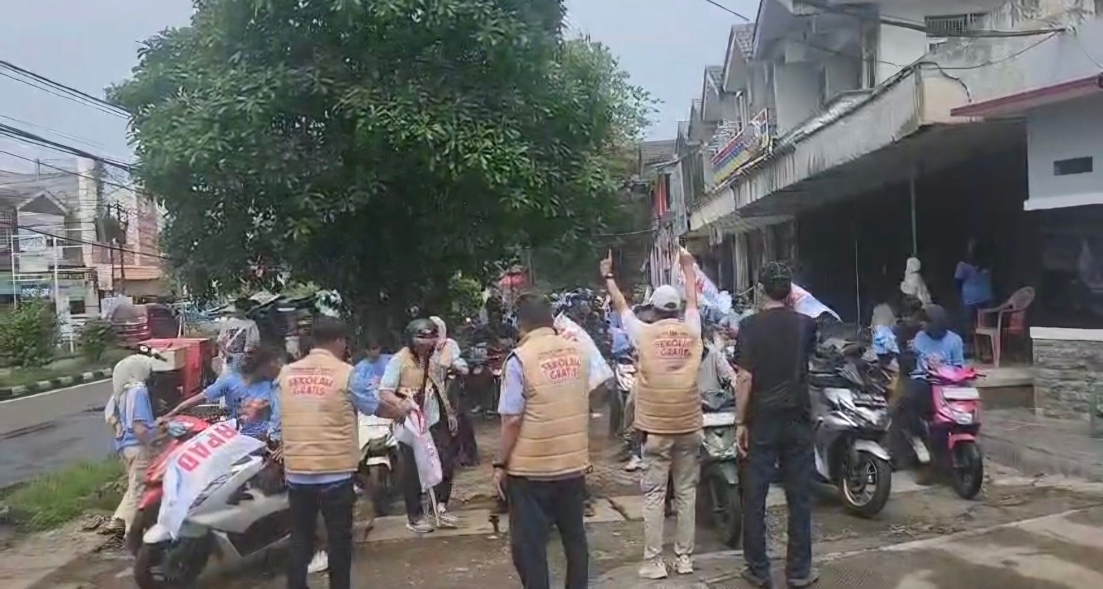 Meski sempat diguyur hujan mereka tetap bersemangat untuk berkumpul dan melakukan aksi konvoi menuju lokasi kampanye akbar.