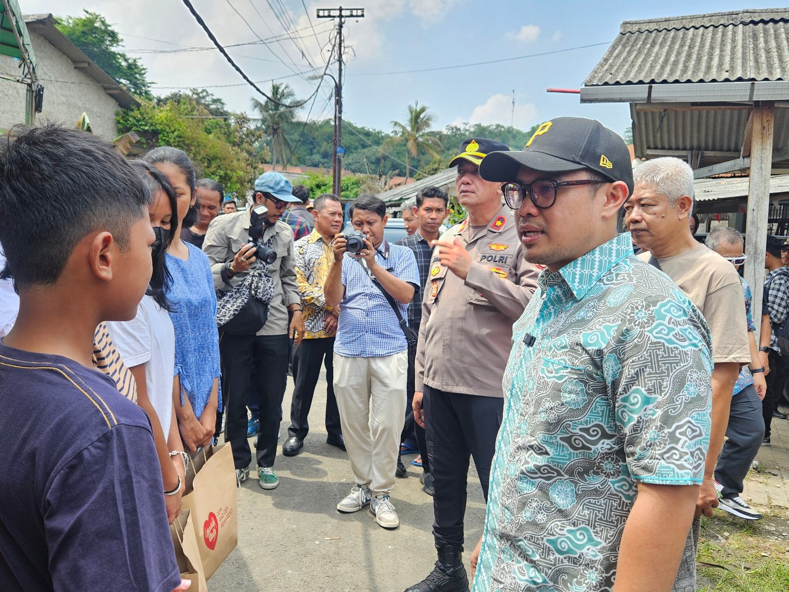 Pilar mengunjungi Asrama Polsek Serpong dalam rangka menyalurkan bantuan sekaligus bertemu para korban terdampak di tempat pengungsian baru yang berada di dalam komplek asrama.