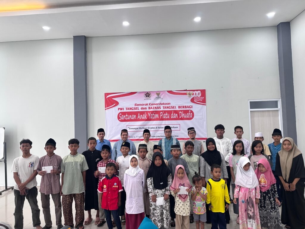 TintaOtentik.Co – Dalam rangka menyemarakkan peringatan Hari Ulang Tahun (HUT) ke-80 Republik Indonesia, Persatuan Wartawan Indonesia (PWI) Kota Tangerang Selatan (Tangsel) bersama Badan Amil Zakat Nasional (Baznas) Tangsel menggelar kegiatan santunan bagi anak yatim, piatu, dan dhuafa dengan mengusung tema “Semangat Berbagi Sesama di Bulan Kemerdekaan”.