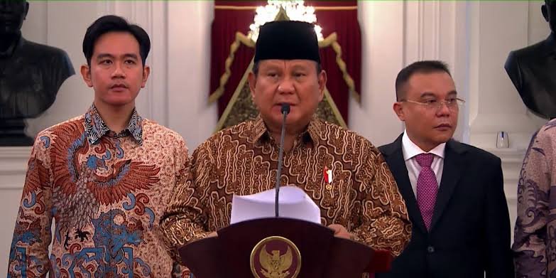 Pengumuman nama-nama tersebut disampaikan oleh Prabowo di Istana Merdeka, Jakarta Pusat, Minggu (20/10/2024). Prabowo didampingi Wakil Presiden Gibran Rakabuming Raka dan Ketua Harian Gerindra Sufmi Dasco Ahmad.