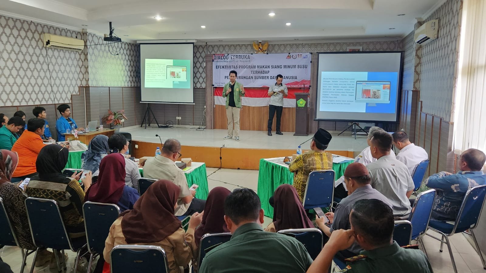 Menjawab hal demikian, Mahasiswa yang tergabung dalam aliansi Tridharma Perguruan Tinggi Mengabdi (TPT-M) menggelar dialog terbuka dengan tema “Efektivitas Program Makan Siang Minum Susu Terhadap Perkembangan Sumber Daya Manusia”.