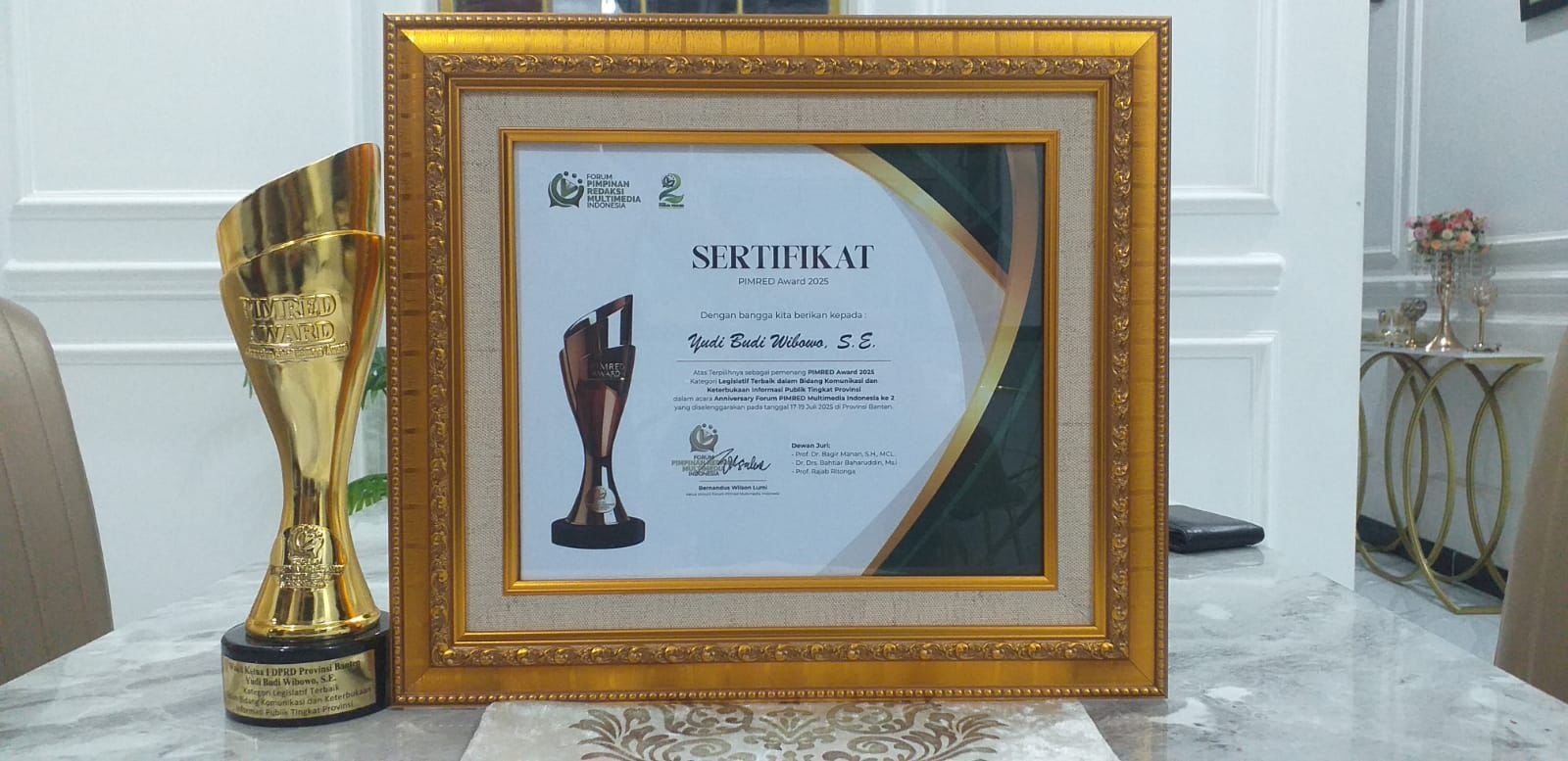 TintaOtentik.Co – Wakil Ketua DPRD Banten Yudi Budi Wibowo menerima penghargaan sebagai Anggota DPRD Banten sebagai Legislatif Terbaik dalam Bidang Komunikasi dan Informasi Publik Tingkat Provinsi, dari Forum Pimred Multimedia Indonesia (FPRMI).