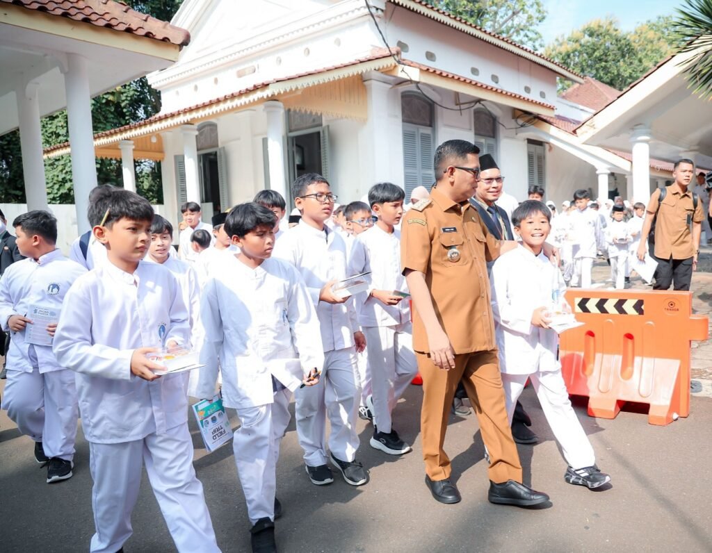 TintaOtentik.Co – Gubernur Banten Andra Soni menerima kunjungan ratusan murid SD Al Azhar Serang di Gedung Negara Provinsi Banten, Selasa (30/9/2025). Bersama siswa, Andra Soni berbaur dan menceritakan tentang sejarah.